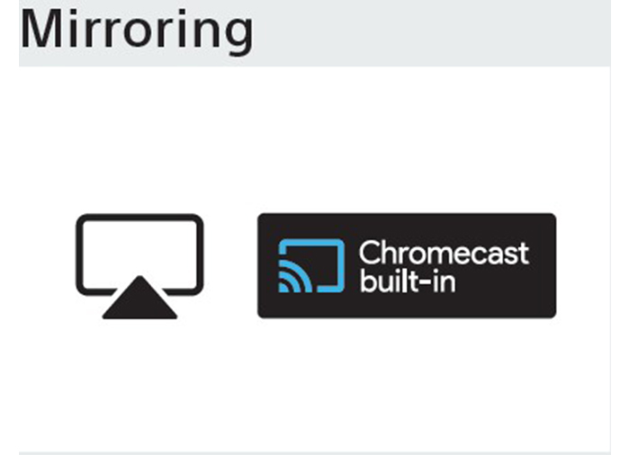 Oglindiți cu ușurință conținutul fără fir de pe un dispozitiv portabil dispozitiv portabil pe BRAVIA cu suport încorporat pentru Apple AirPlay și Chromecast încorporat.