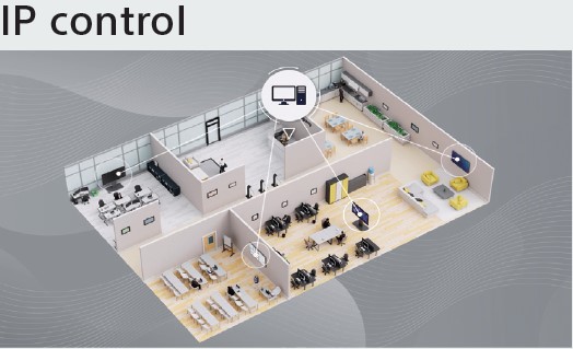 Ecranele BRAVIA Pro Display oferă control IP cu multe funcții de afișare cum ar fi comutarea surselor de intrare prin IP. Atât HTML5, cât și Android care rulează pe afișaj pot trimite comenzi de control IP către afișajului și pot fi rulate de pe dispozitive externe compatibile cu IP.