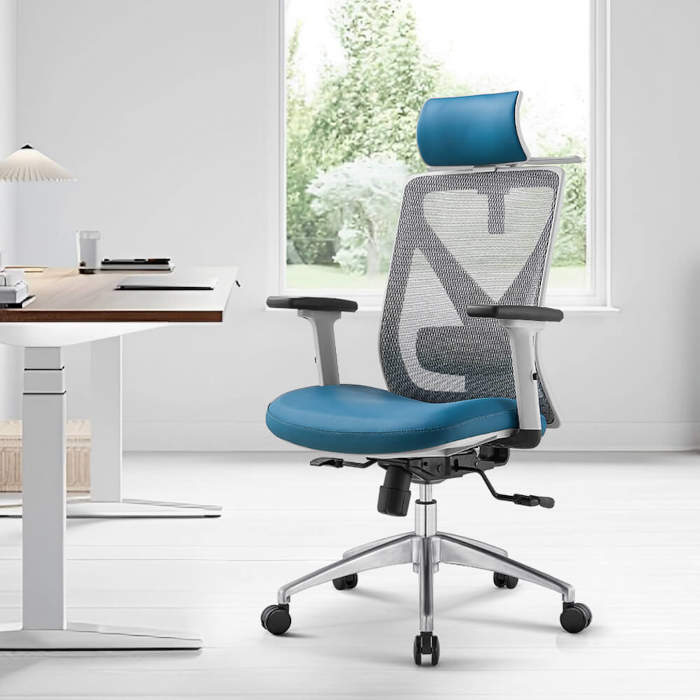 Scaunul ergonomic Mike‑H AL Blue oferă confort sporit pentru lucru îndelungat, combinând spătarul reglabil pe înălțime, suportul lombar ajustabil și tetiera flexibilă. Șezutul din spumă injectată și mecanismul syncron asigură o poziție naturală și relaxată, iar brațele 3D și baza din aluminiu îi cresc stabilitatea și adaptabilitatea. Ideal pentru un birou modern și pentru menținerea unei posturi corecte pe tot parcursul zilei.